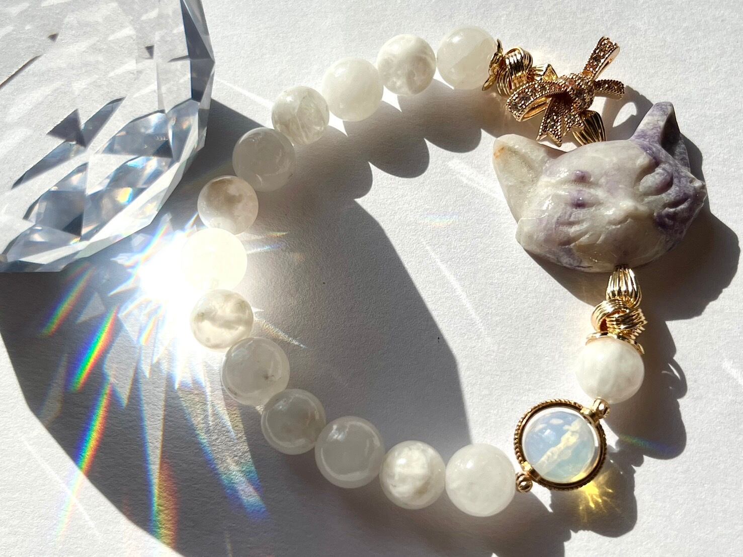 天然石 ブレスレット 猫 パープルハウライト ホワイトガーデン オパライト スノーガーデン パワーストーン