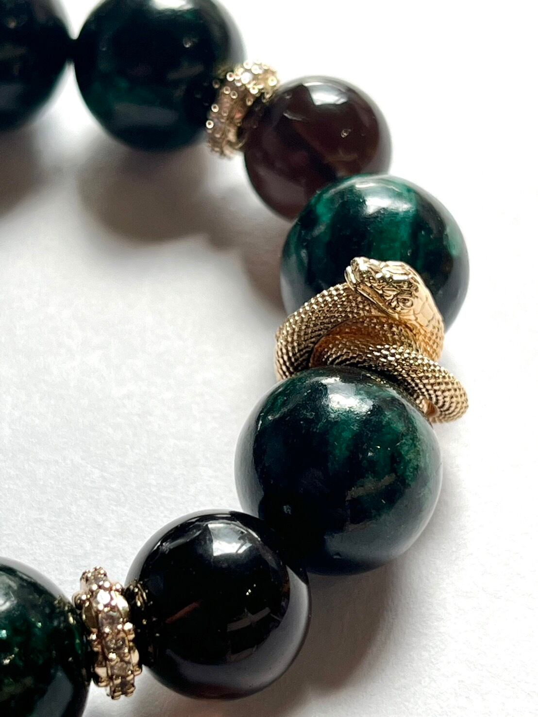 天然石 ブレスレット グリーンエメラルドマイカ スモーキークォーツ 蛇 パワーストーン