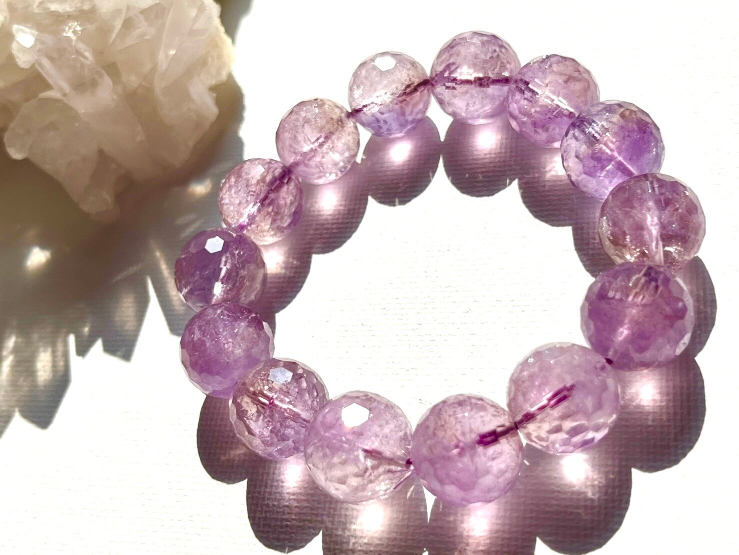 ラベンダーアメジストは、心を落ち着ける力を持ち、シトリンの明るいエネルギーは、ポジティブな変化を引き寄せると言われています。シトリンは仕事運をアップさせます。この特別なブレスレットは、シンプルながらも高い存在感を持ち、特別なシーンからカジュアルな日常まで幅広くご利用いただける一品です。