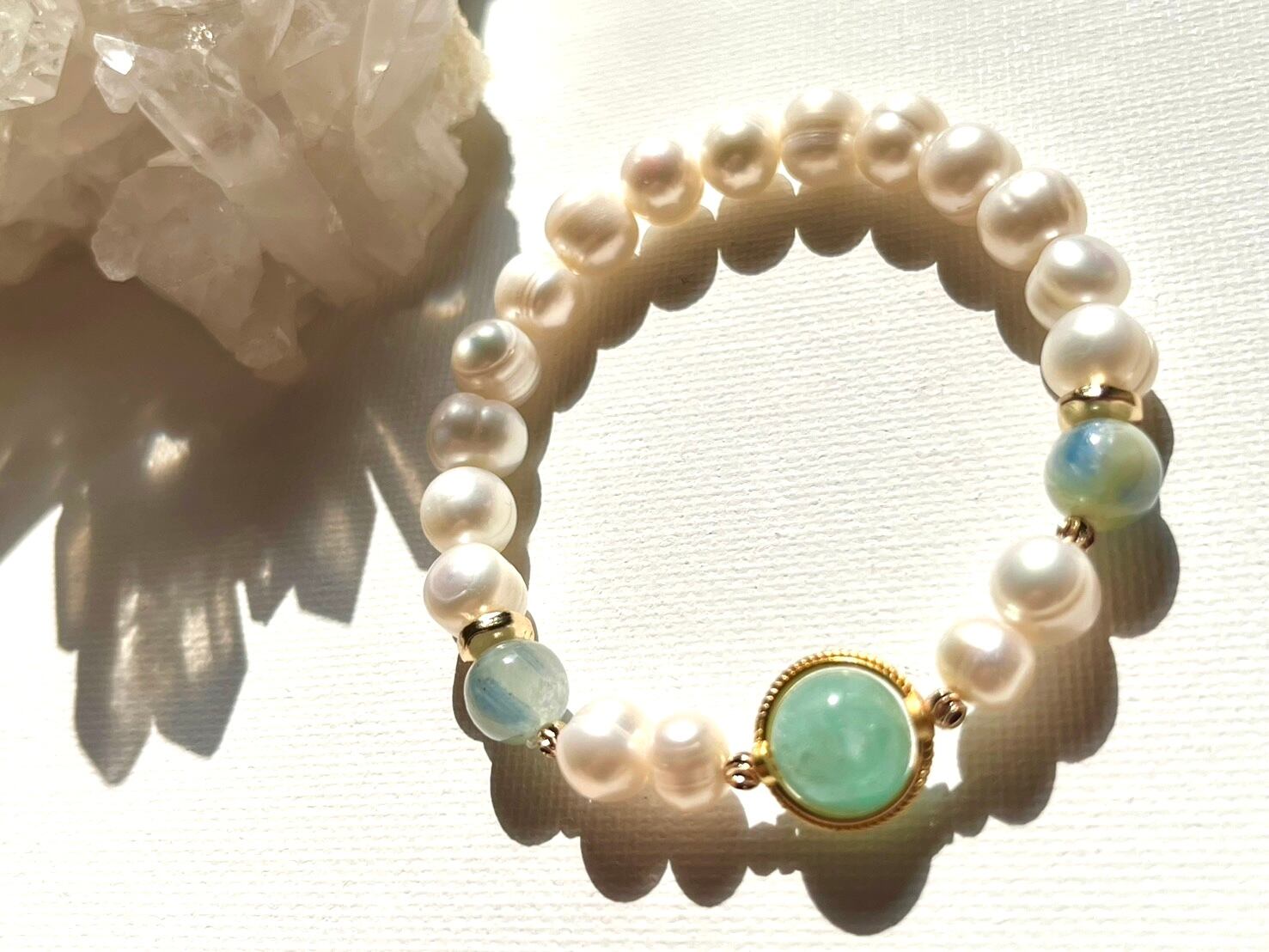 天然石 ブレスレット 淡水パール エンジェライト カイヤナイト パワーストーン