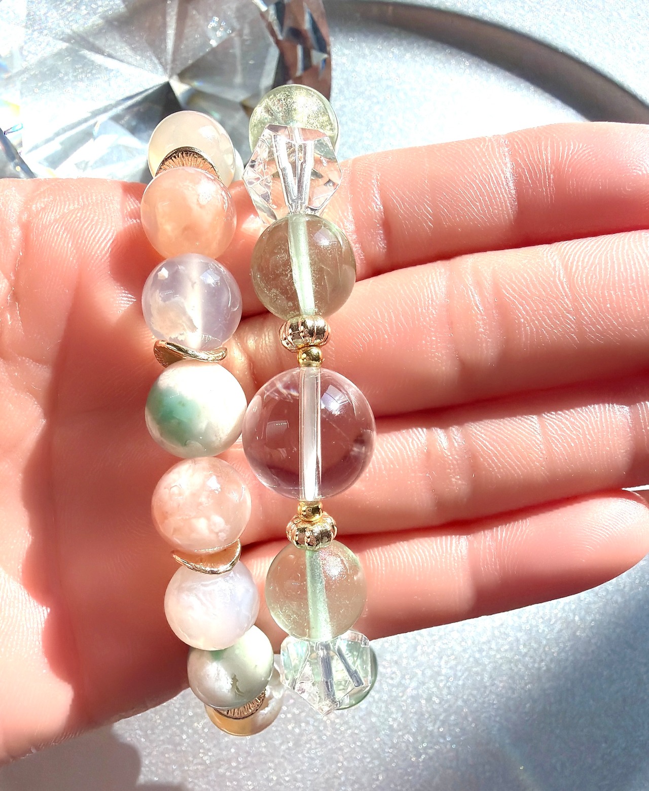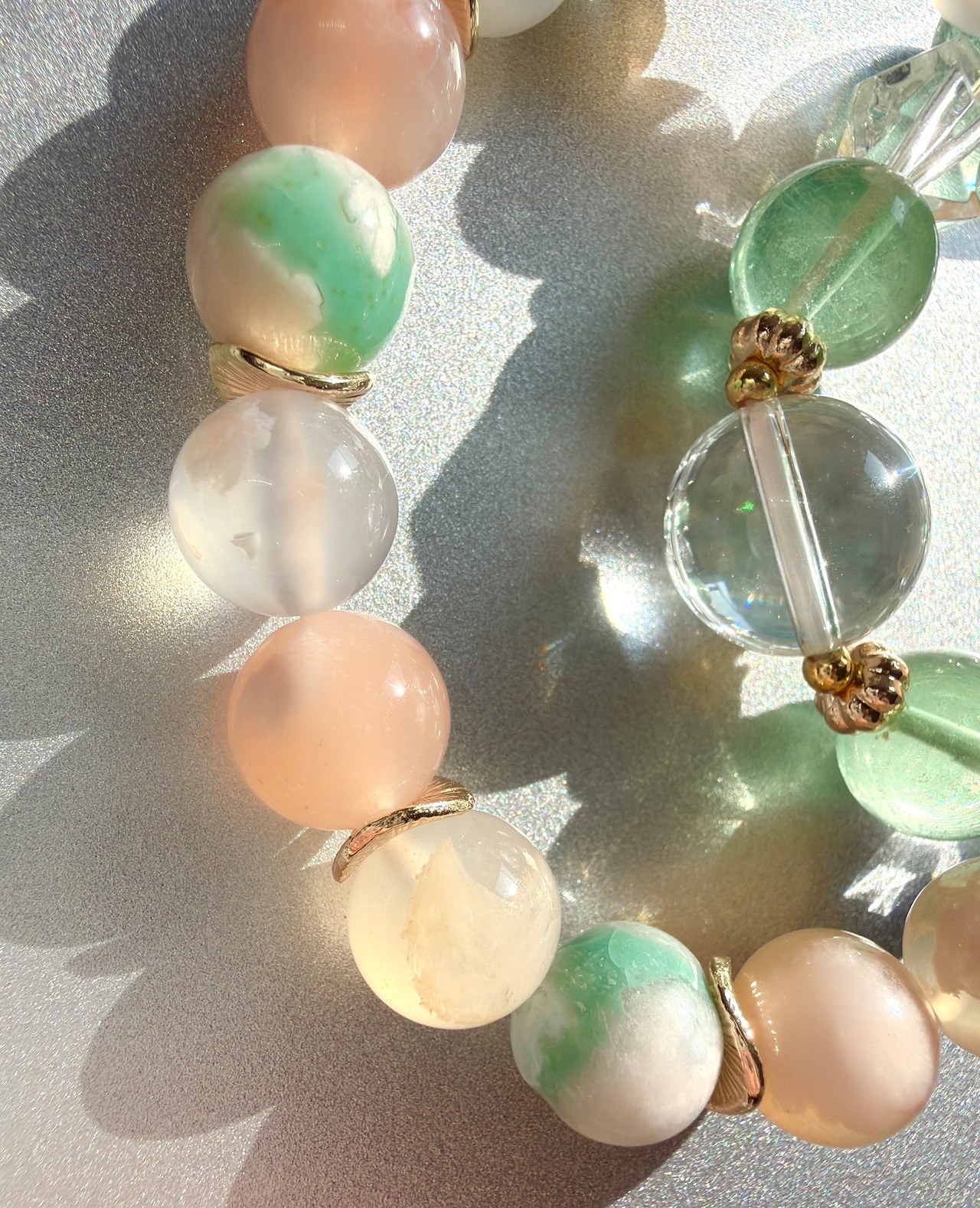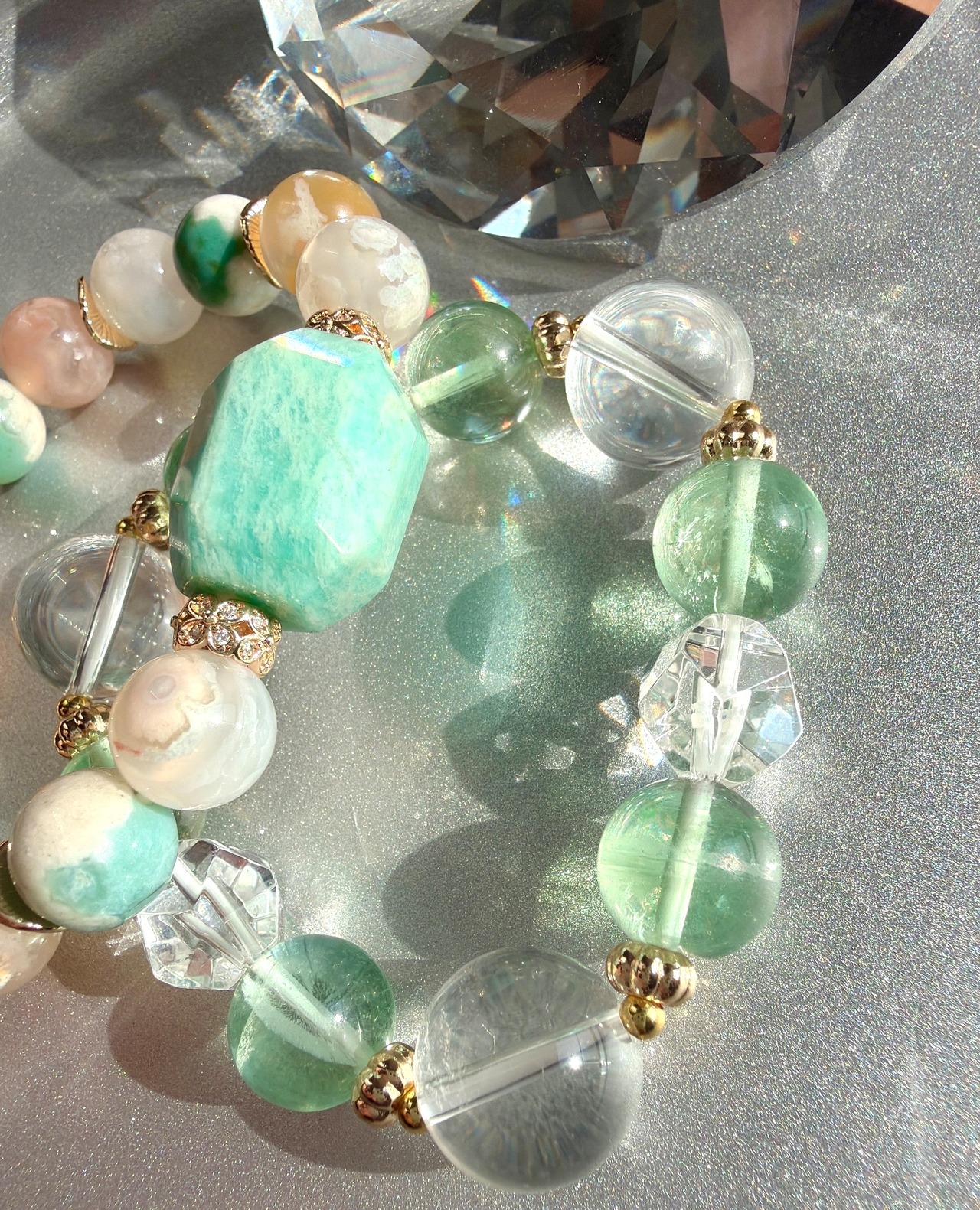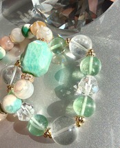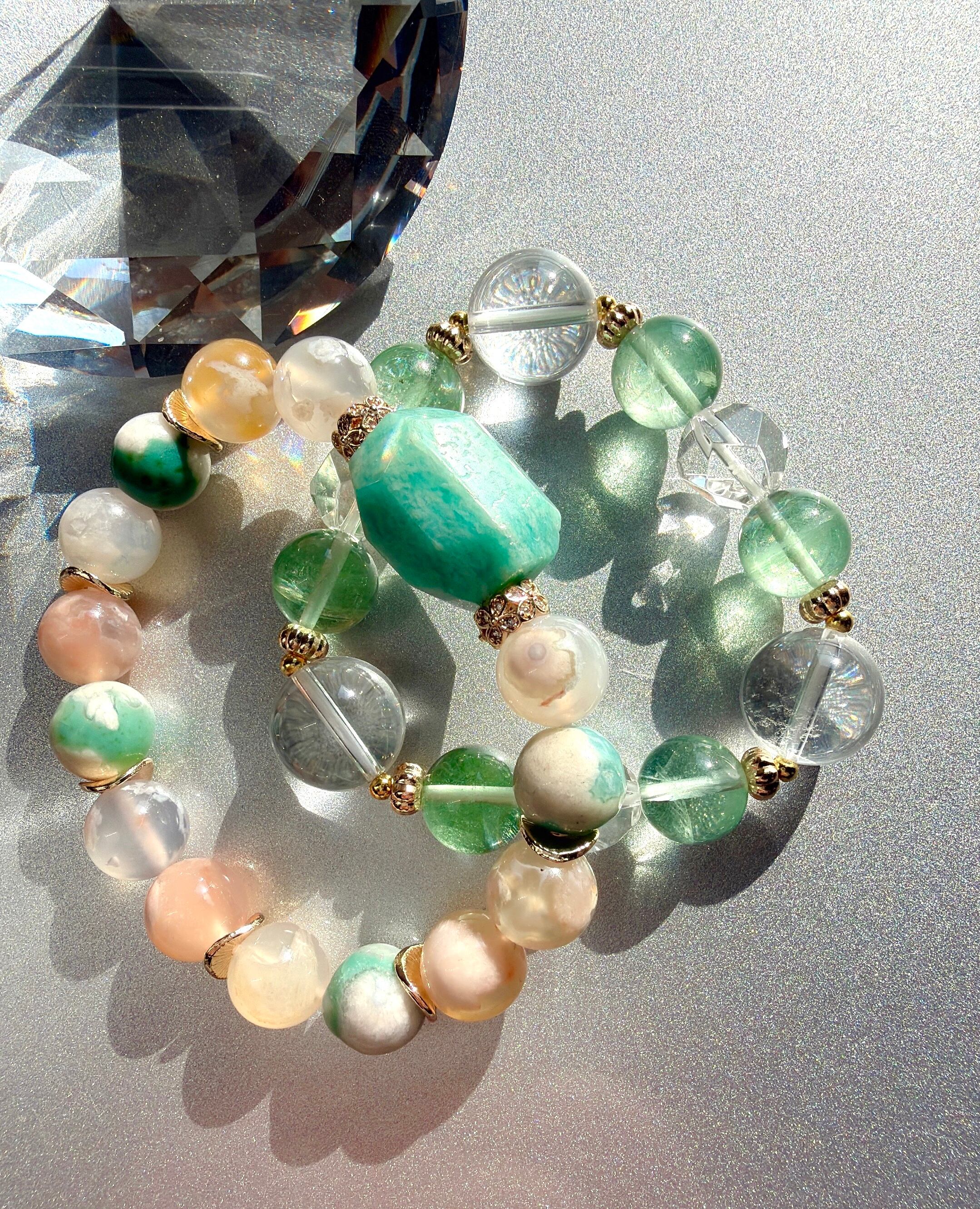 天然石 ブレスレット アマゾナイト グリーン桜瑪瑙 グリーンフローライト 水晶 パワーストーン コーディネート