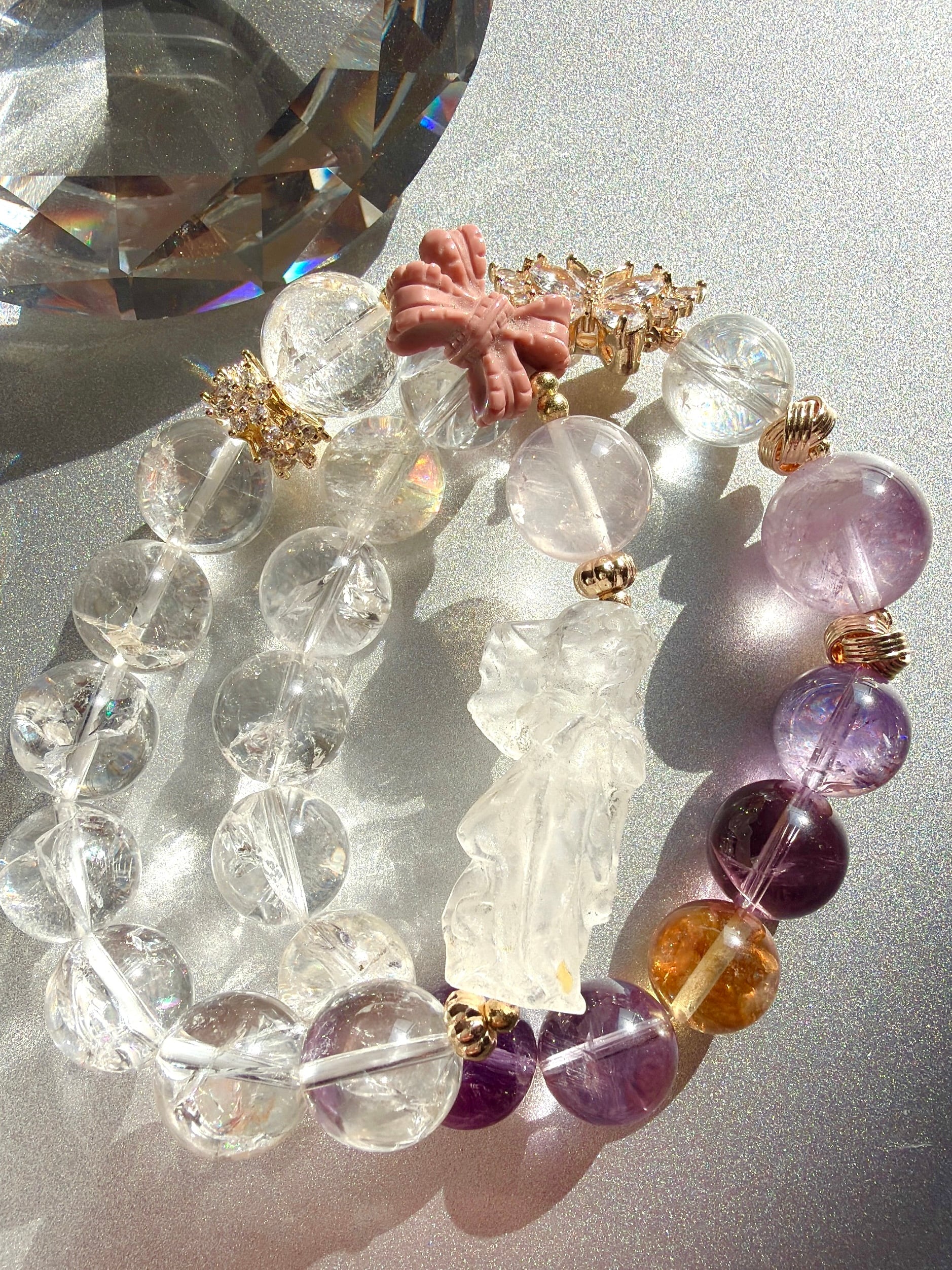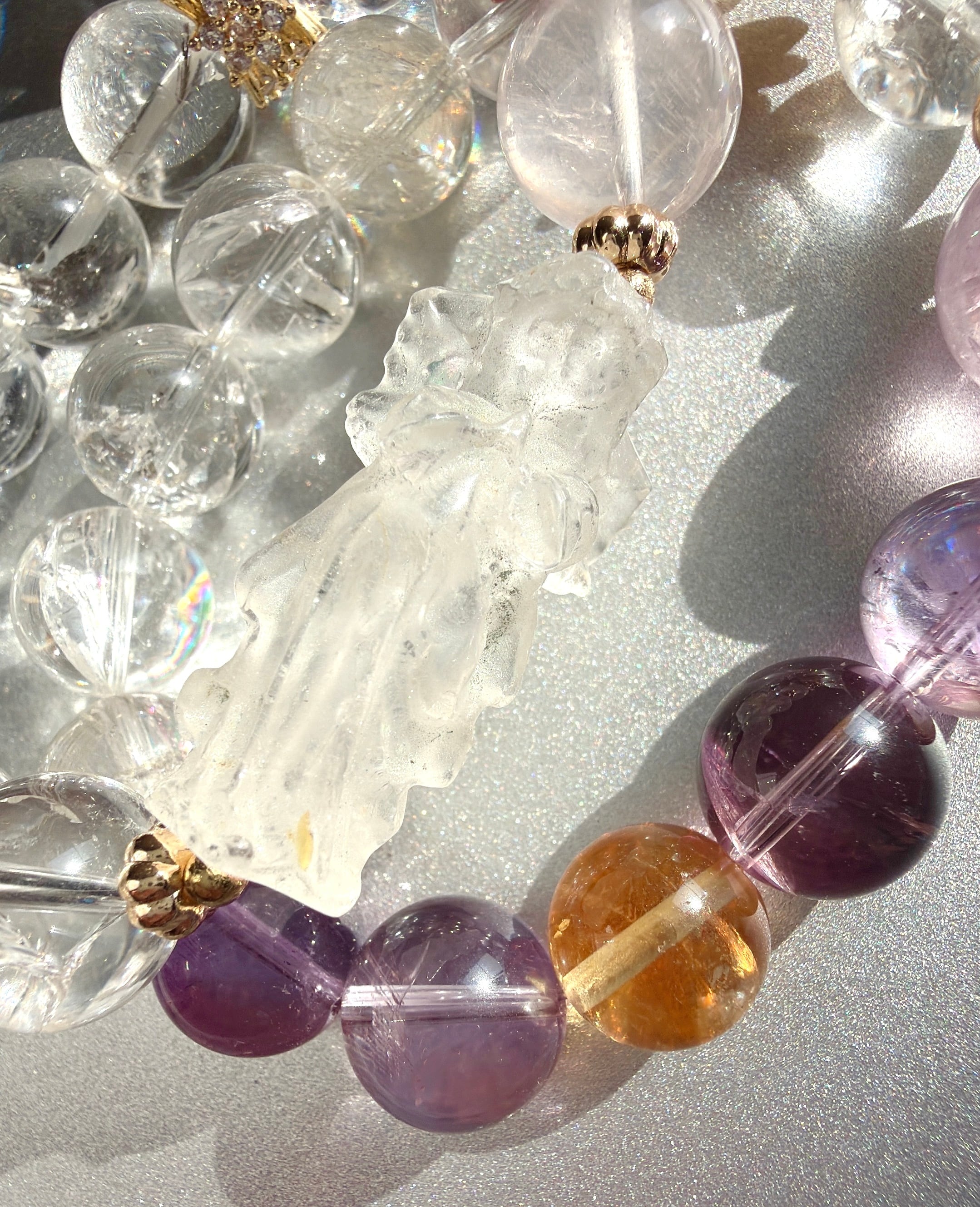 天然石 ブレスレット 天使 ライモナイトインクォーツ リボン アラシャン ローズクォーツ アイリス水晶 ラベンダーアメジスト アメジスト シトリン パワーストーン コーディネート