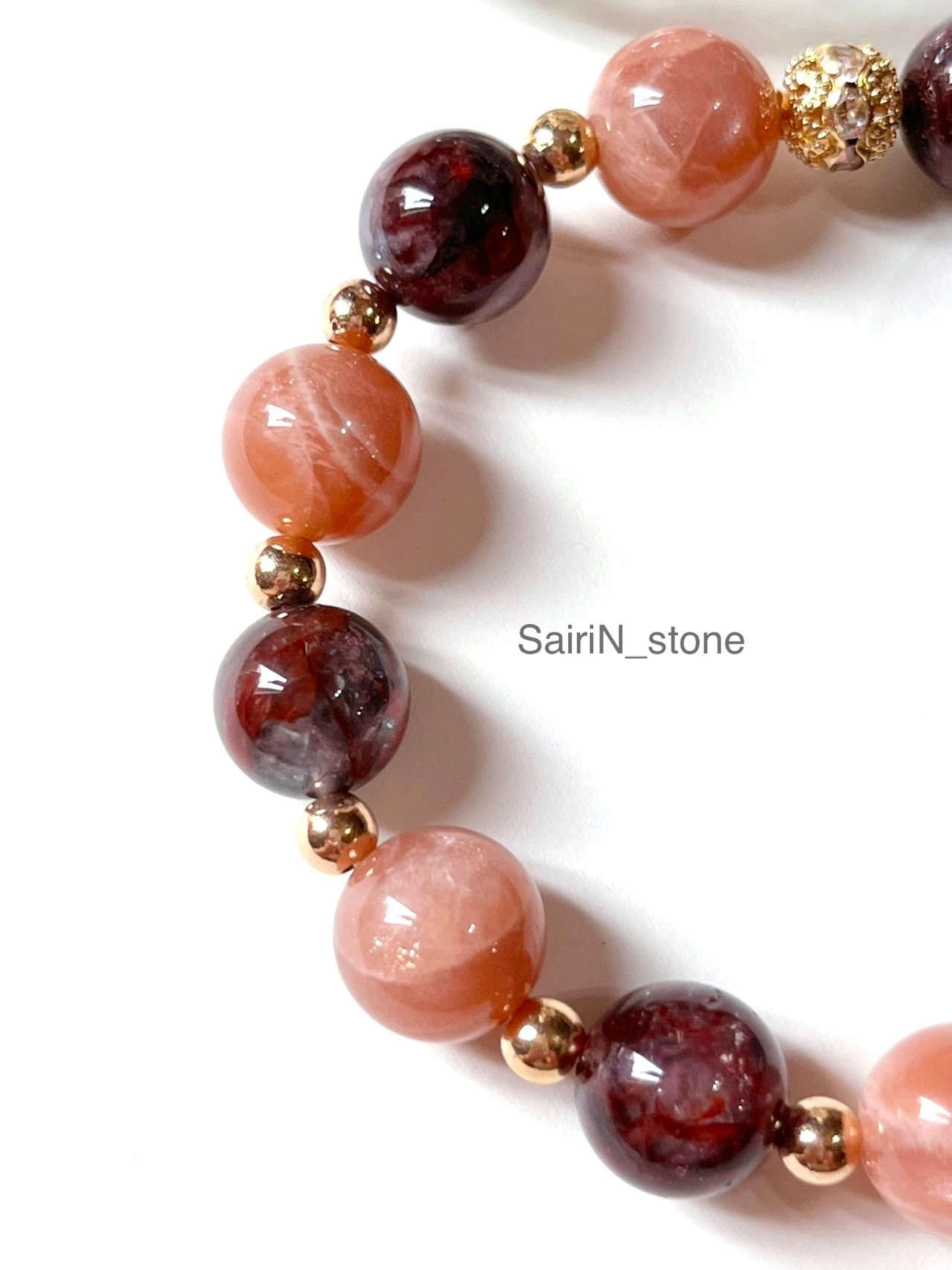 各石の意味と効果はもちろん、それぞれの色や模様も魅力です。ラブラドライトの神秘的な輝き、ファイヤークォーツのパワフルなエネルギー、オレンジムーンストーンの穏やかな癒し効果。このブレスレットを身につけることで、様々な面でサポートしてくれることでしょう。