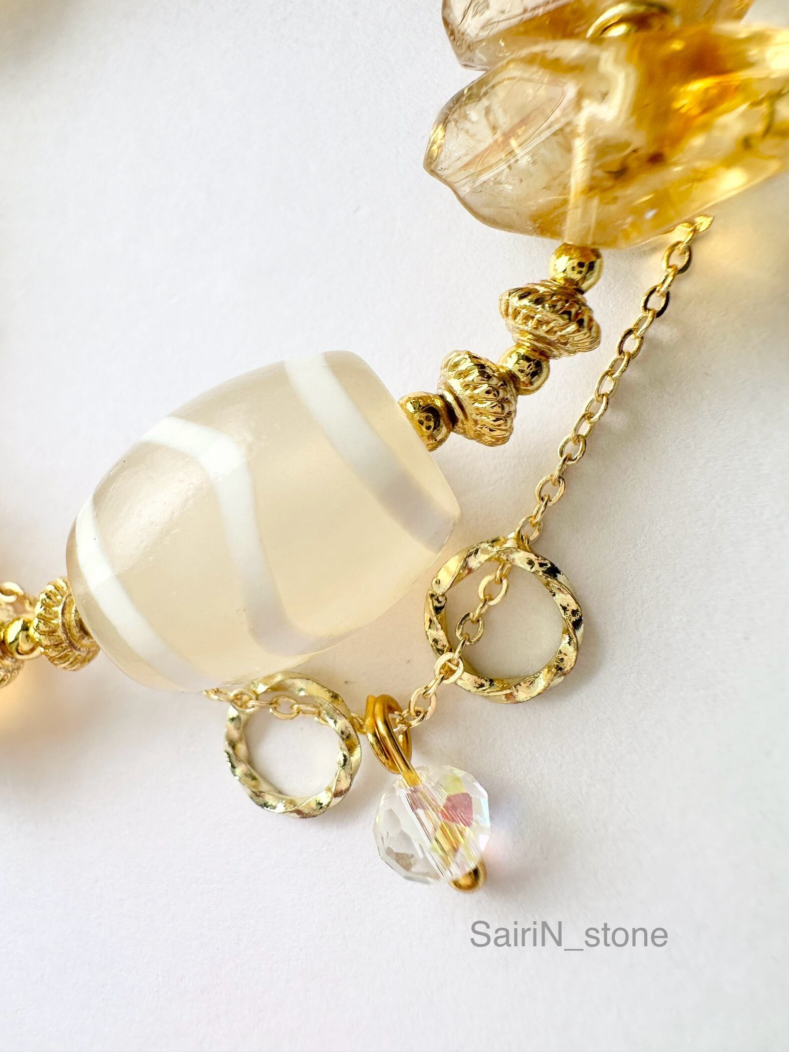 天珠ブレスレット:水紋天珠&シトリン&ハニーシトリンは、一つ一つが美しく上品かつ華やかな装いを演出します。