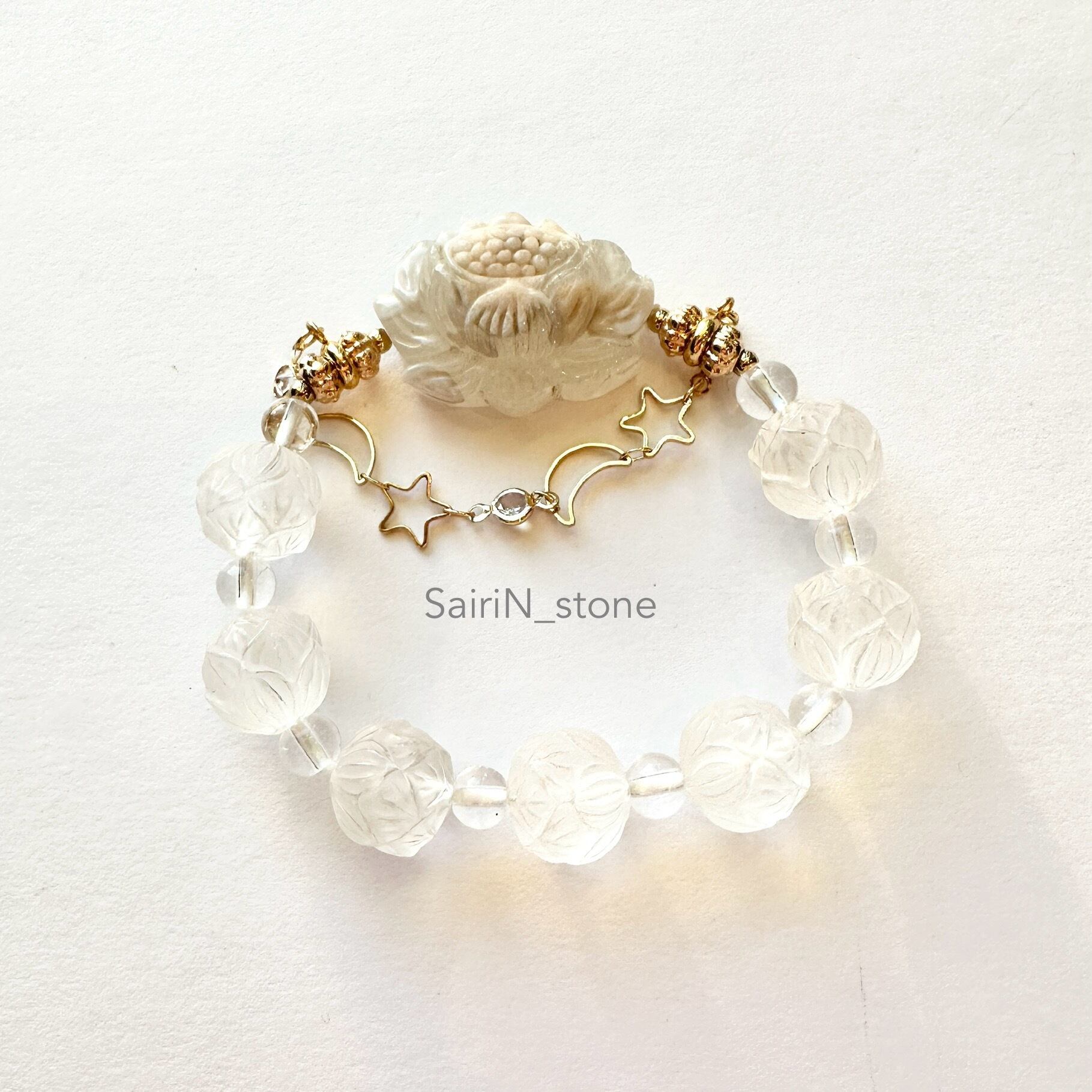 sold out!天然石 ブレスレット 水晶 蓮 桜瑪瑙 蓮