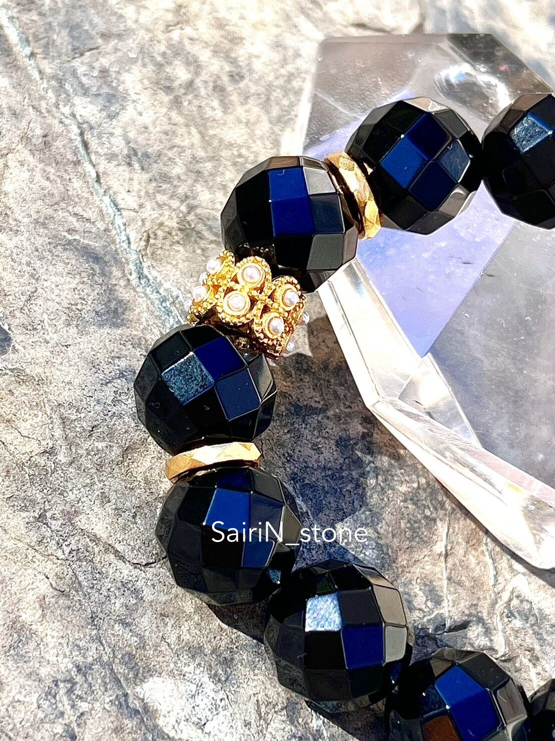上品で個性的なデザインと高品質の天然石と高品質パーツが特徴です。オニキスとダルメシアンジャスパーの豊かな色合い、キラキラ輝くカットのオニキスが華やかさを添えます。