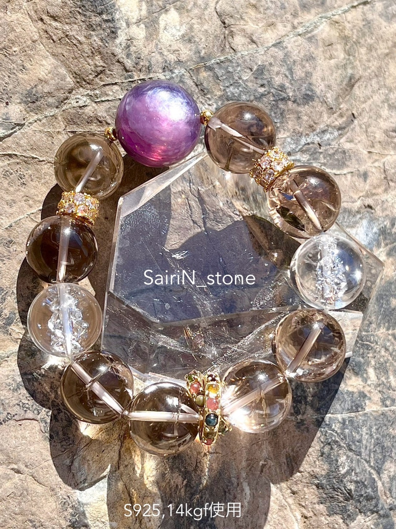 高品質天然石・S925パーツ使用 天然石 ブレスレット パープルマイカ アイリススモーキー アイリス水晶