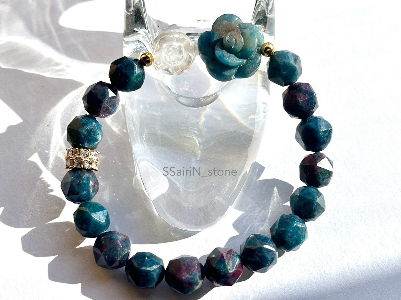 sold out!天然石 ブレスレット ルビー イン カイヤナイト トロレアイト 水晶 薔薇