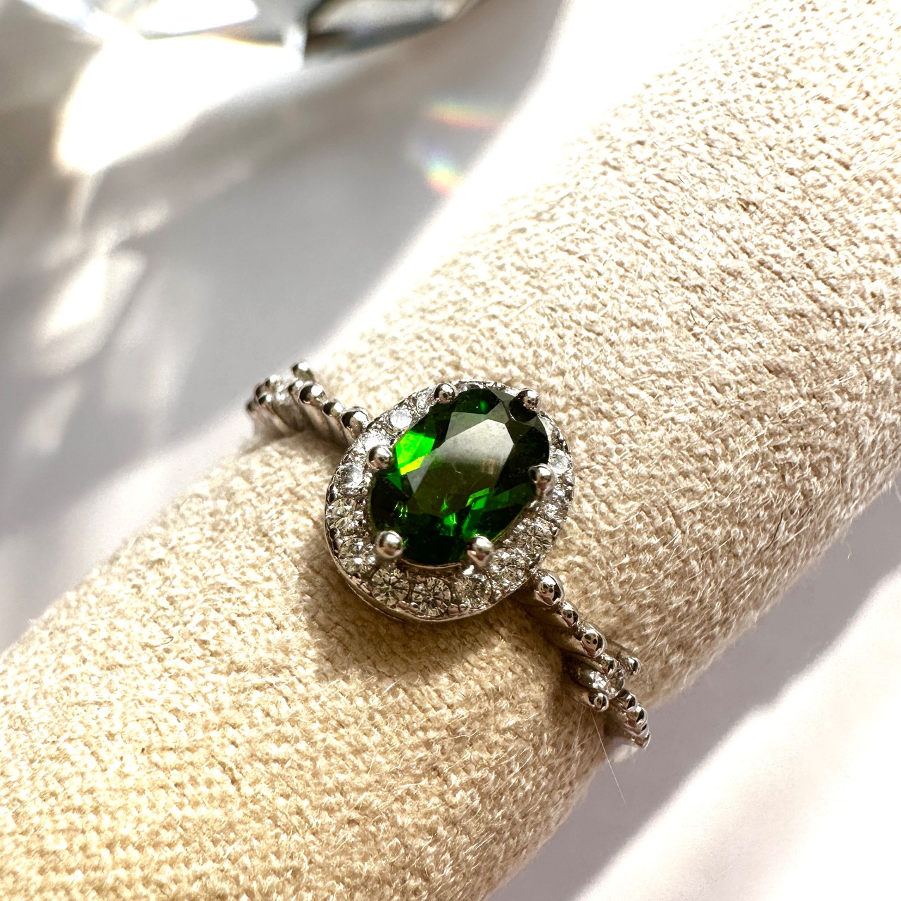 ダイオプサイトは、その色合いや輝きから、希少なジュエリーコレクションとしても評価されています。あなたの指元に鮮やかな輝きを与え、特別な日々を演出します。品質と美しさにこだわったこの指輪は、あなたに幸福感と自信を与えることでしょう。大切な人への贈り物としてもおすすめです。