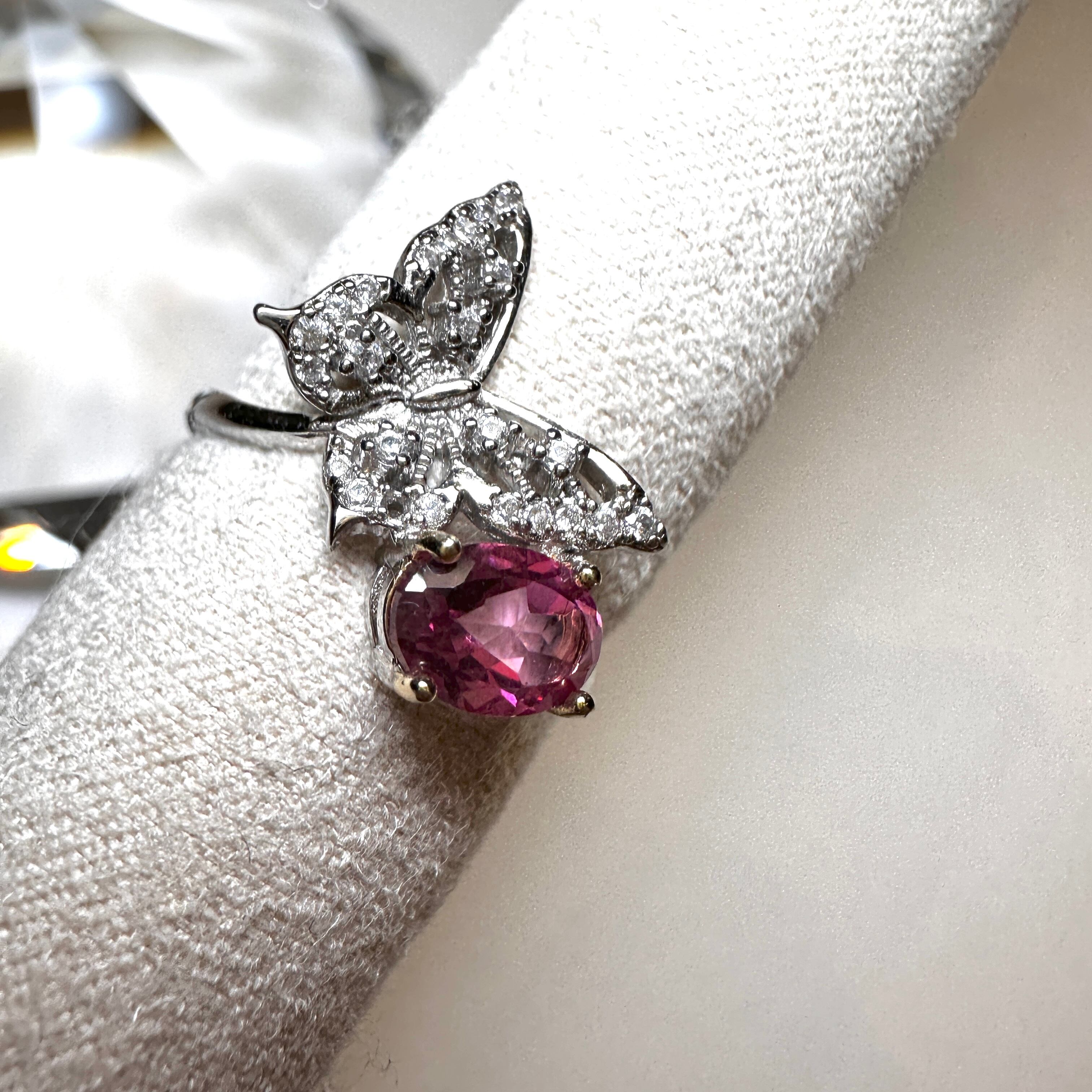 美しい蝶々のデザインに、ピンクトパーズが輝くエレガントな指輪です。女性らしさを引き立てるデザインと華やかな輝きが、手元を一層美しく演出します。上品な蝶々モチーフには、愛と幸運を象徴する意味を込めています。