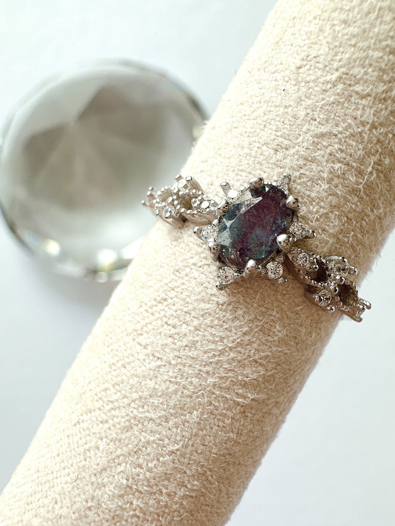 アレキサンドライトの神秘的な輝きがあなたの日常に魔法をかけてくれることでしょう。是非、この指輪で特別な瞬間を彩ってください。