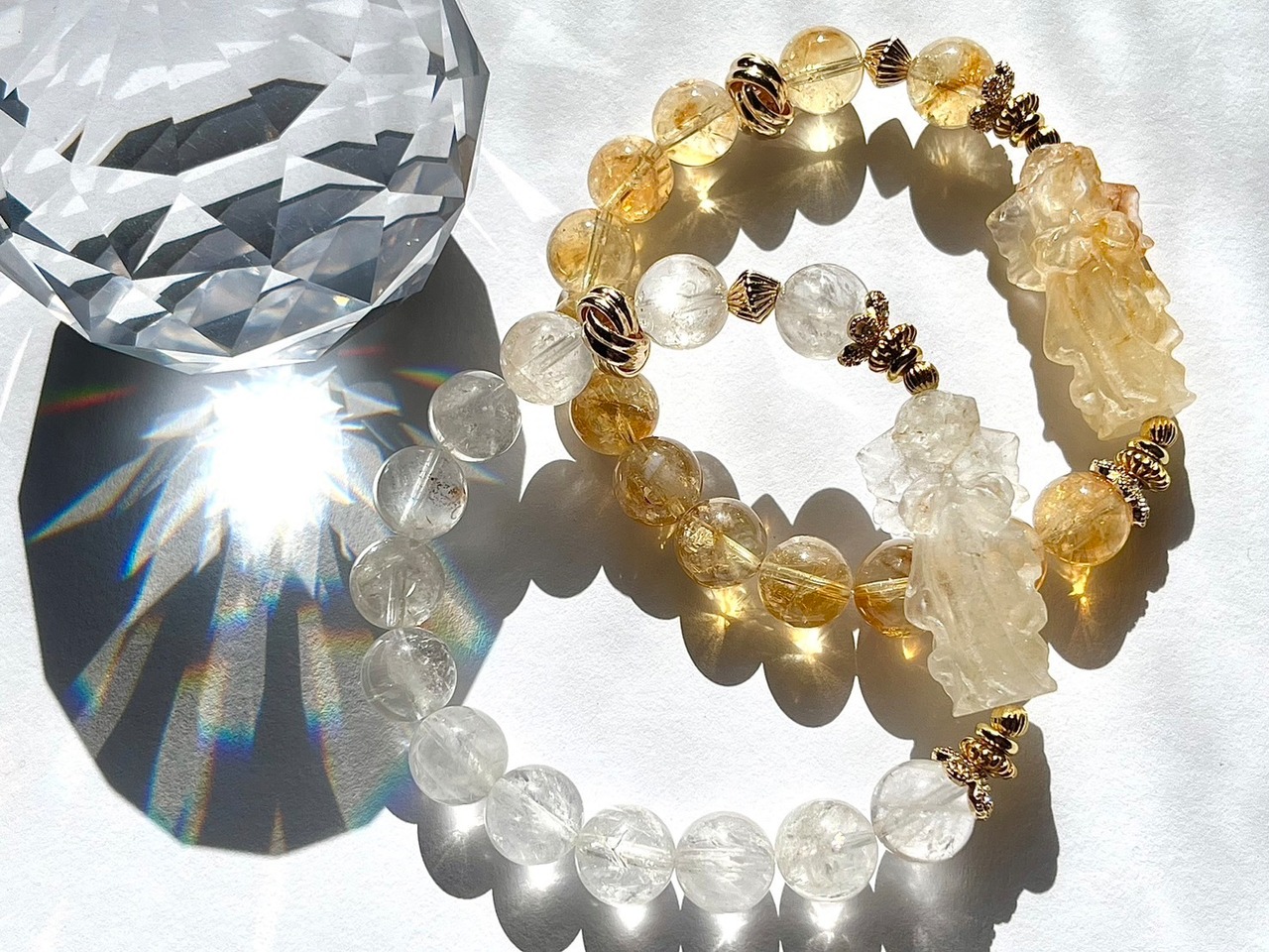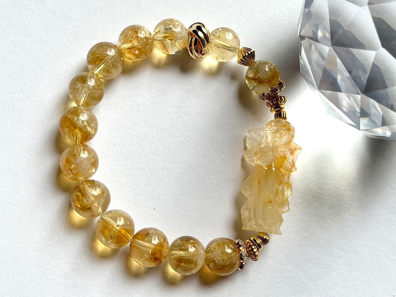 sold out!天然石 ブレスレット シトリン ライモナイトインクォーツ ブリザードクォーツ 天使
