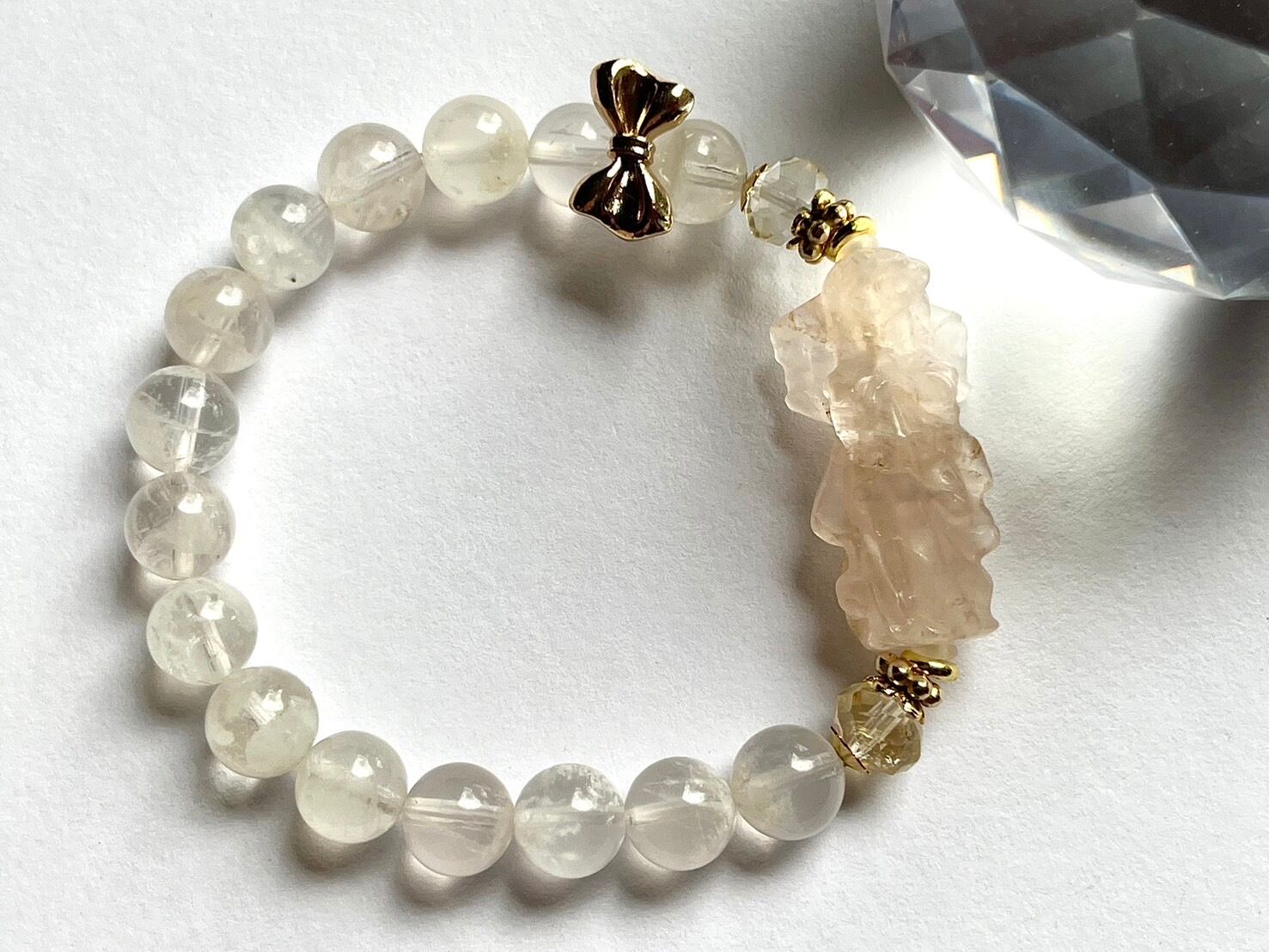 セリサイトインクォーツとピンク水晶の天使ブレスレット: