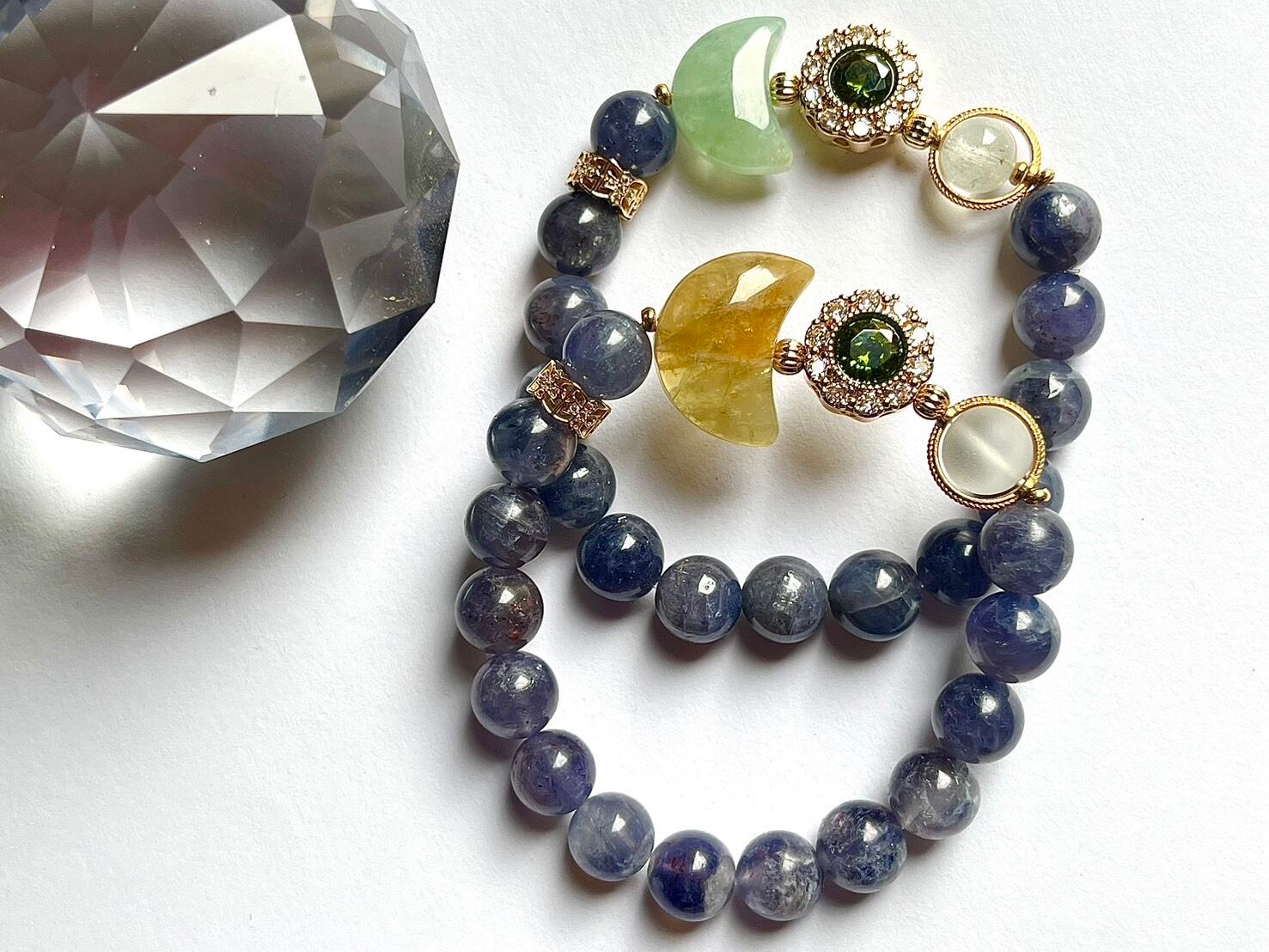 sold out!天然石 ブレスレット ブラッドショットアイオライト 月 モルガナイト マット水晶 パワーストーン