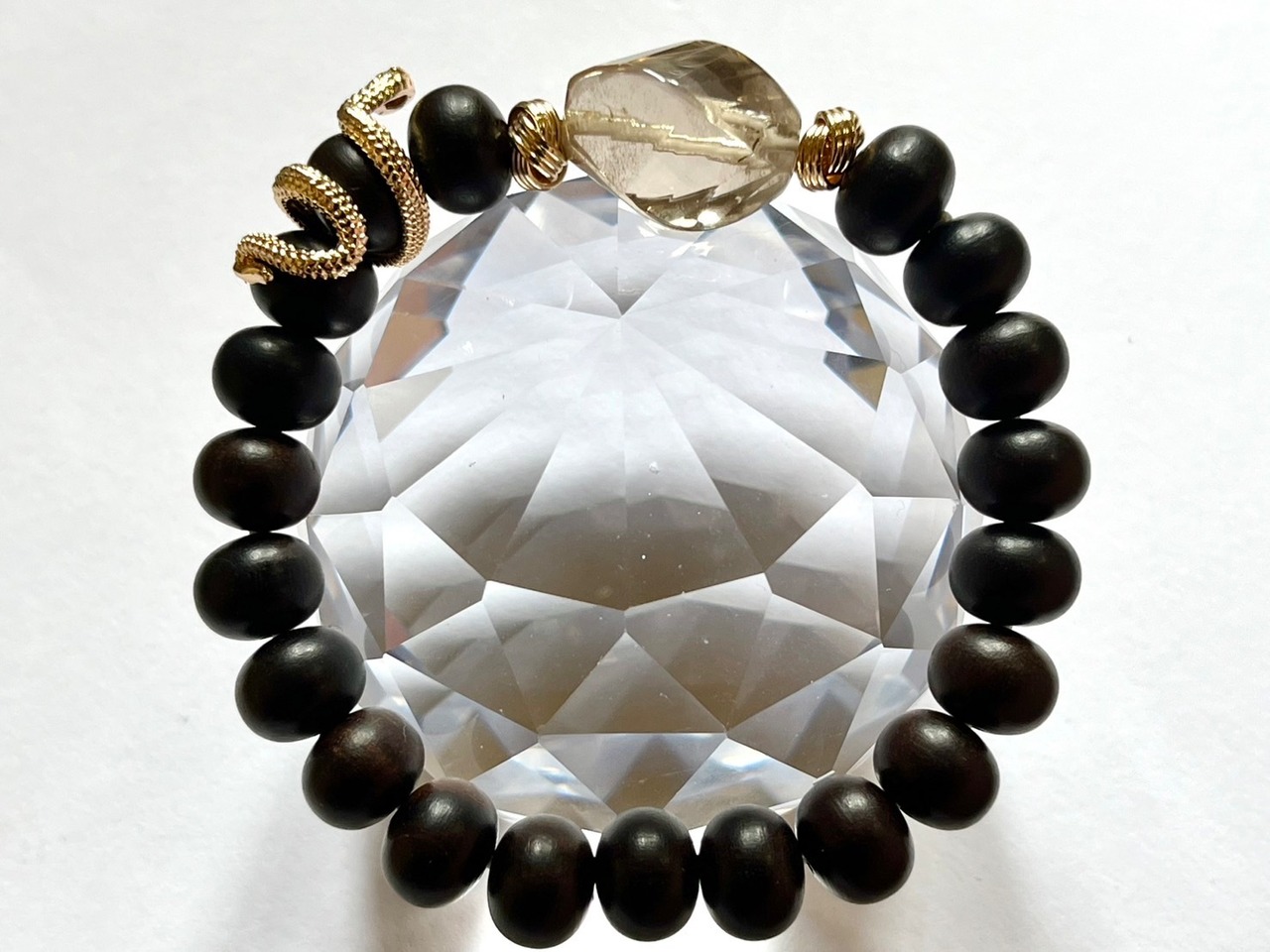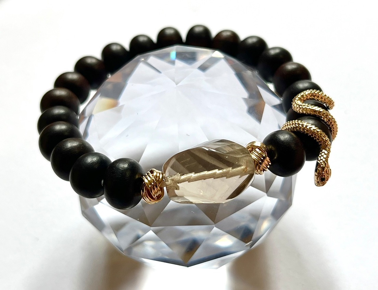 華やかで神秘的なデザインの、天然石 ブレスレット 白檀 スモーキークォーツ 蛇 パワーストーンが新登場です!白檀とスモーキークォーツの美しいコンビネーションに、クールな蛇パーツがアクセントを添え、あなたの手元に特別な魅力を与えます。このブレスレットは、心身のバランスを整え、日常をより充実させるサポートをしてくれるアイテムです。