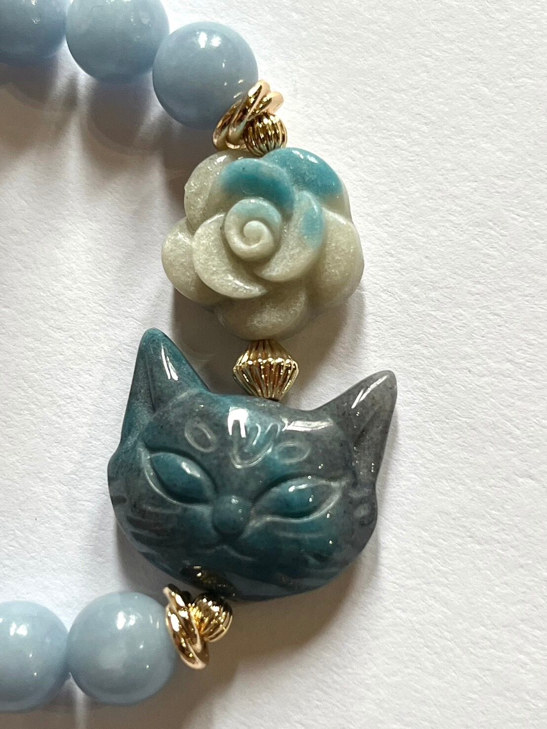 天然石 ブレスレット トロレアイト 猫 薔薇 エンジェライト パワーストーン