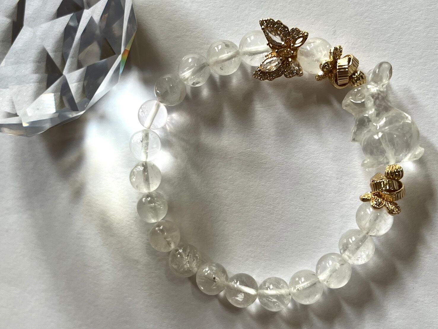 天然石 ブレスレット 水晶 うさぎ ホワイトガーデン 蝶 パワーストーン