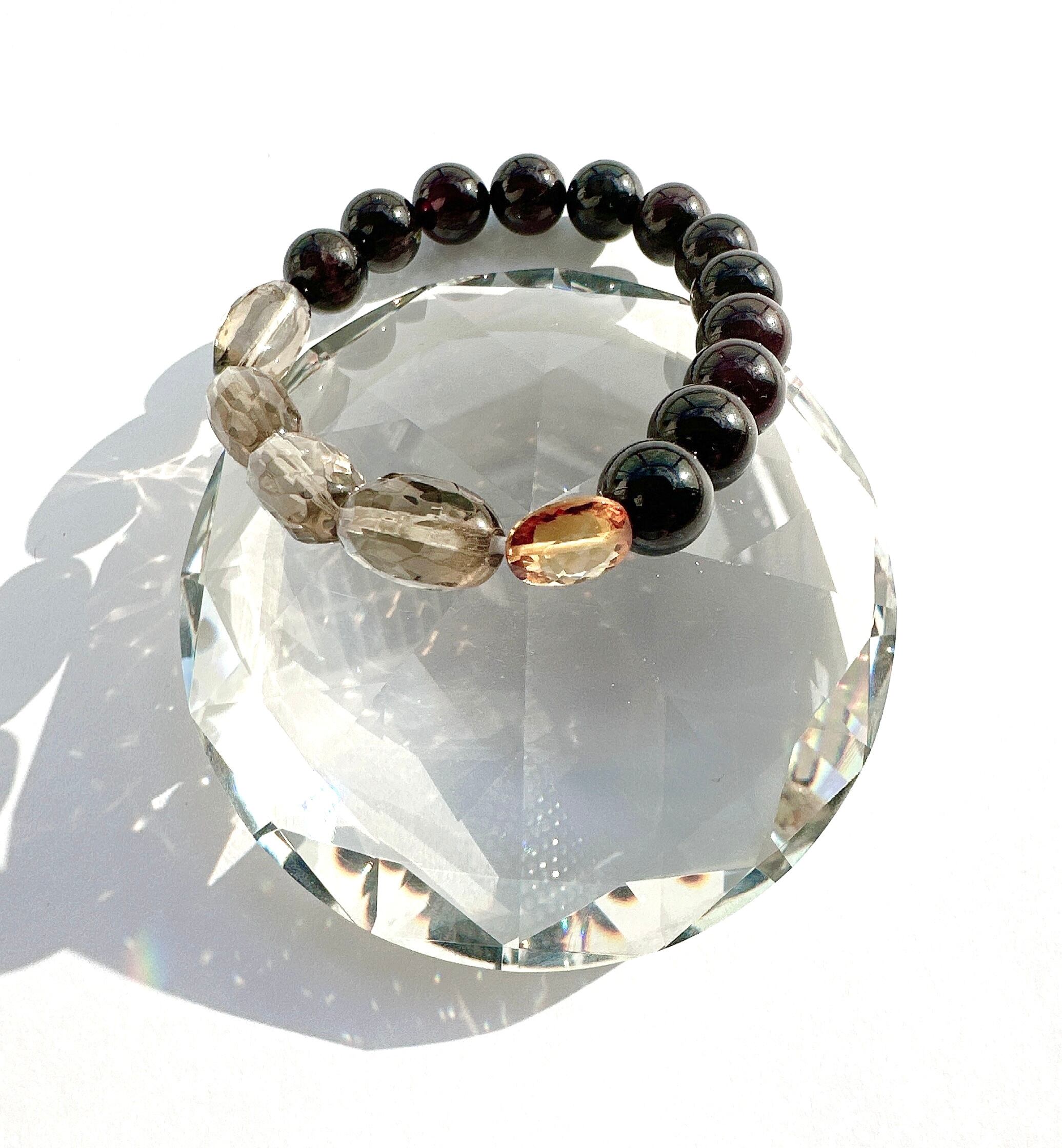 シトリン宝石ルースガーネットスモーキーブレスレットサイズ修正16.7
